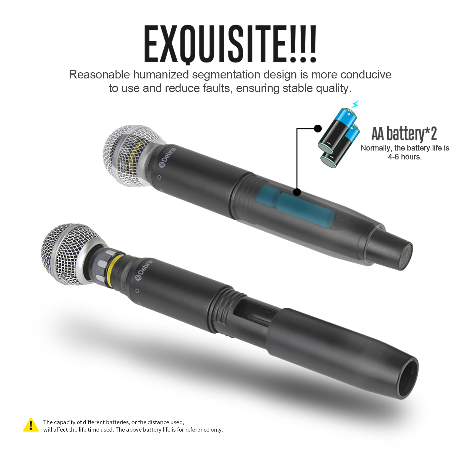 - High-quality Microphone System: D Debra Audio D-440 Karaoke set is equipped with 4 wireless microphones and a receiver. There are 4-channel receivers with handheld microphones or lavalier microphones or headset microphones. Perfect for party, karaoke KTV, church, weddings, DJ, outdoor, stage, etc.