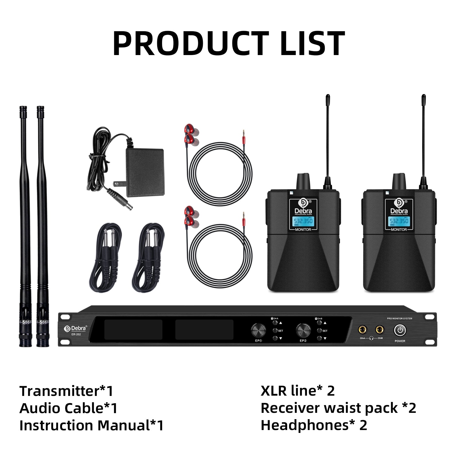 D Debra Audio PRO Mono ER-202 UHF Dual Channel Wireless in Ear Monitor System with Monitoring Type for Stage, Receiver, Studio, Guitar, Band Performance